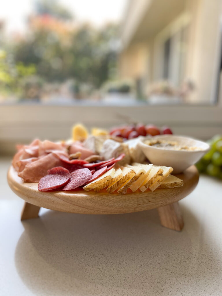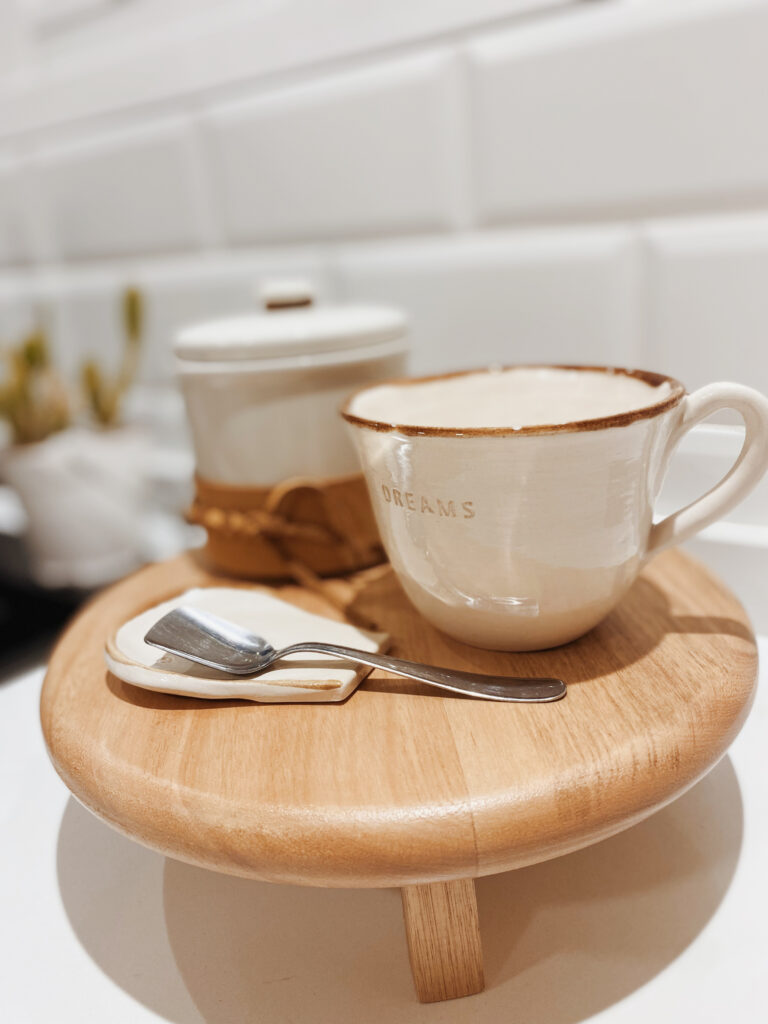 Su diseño de tres patas le da estabilidad y estilo, y la madera de eucalipto protegida con hidrolaca asegura durabilidad sin perder esa estética artesanal que tanto nos representa. Lo usamos en mesas dulces, vitrinas de cocina, desayunos especiales o incluso como bandeja elevada para crear niveles visuales en tus decoraciones.