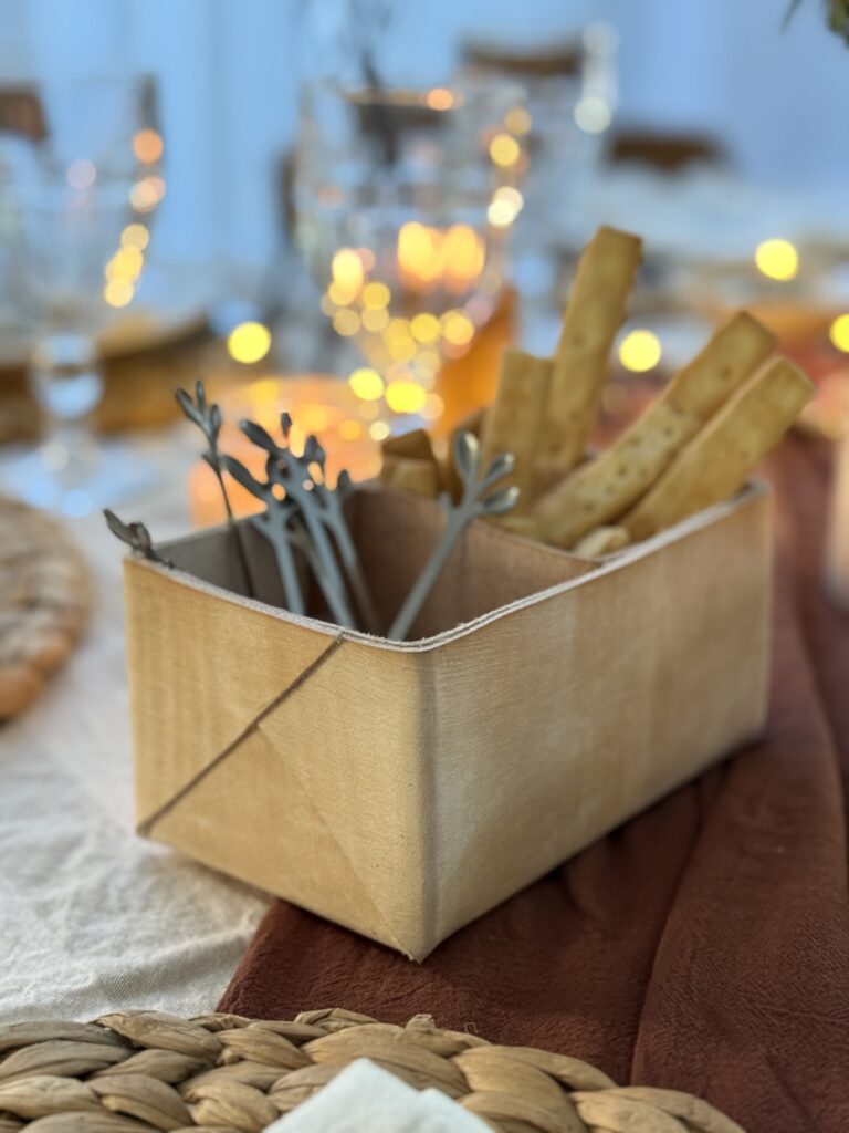 Queda perfecta con sobres de té, cápsulas, utensilios chicos, servilletas, o incluso en tu rincón de trabajo para guardar clips o papelería. Su diseño simple pero cálido suma un detalle artesanal a cualquier espacio, y su estructura firme permite mantener todo en su lugar con estilo.