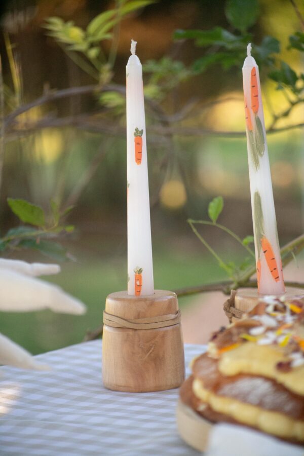 Estos candelabros de madera maciza con lazo de cuero son eso: un detalle que eleva. Perfectos para usar con velas altas, aportan altura y calidez a cualquier composición. Funcionan en mesas al aire libre, cenas íntimas, o rincones donde querés sumar una atmósfera especial.