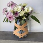 Incluye: 1 florero de vidrio + faja de cuero con remaches desmontable