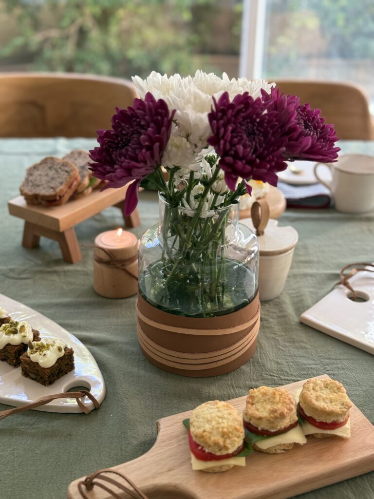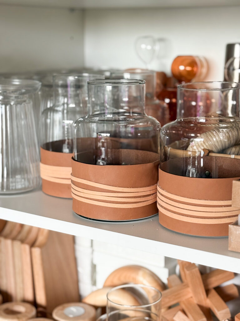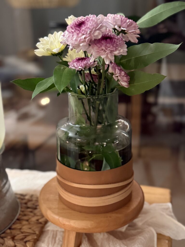 Este florero de vidrio con faja en dos tonos de cuero es una de esas piezas que suman carácter sin esfuerzo. Su silueta en movimiento lo hace ideal para acompañar flores frescas, ramas secas o simplemente para usarlo como objeto decorativo por sí solo. El detalle de cuero —hecho a mano— aporta textura y calidez, conectando lo simple con lo artesanal.