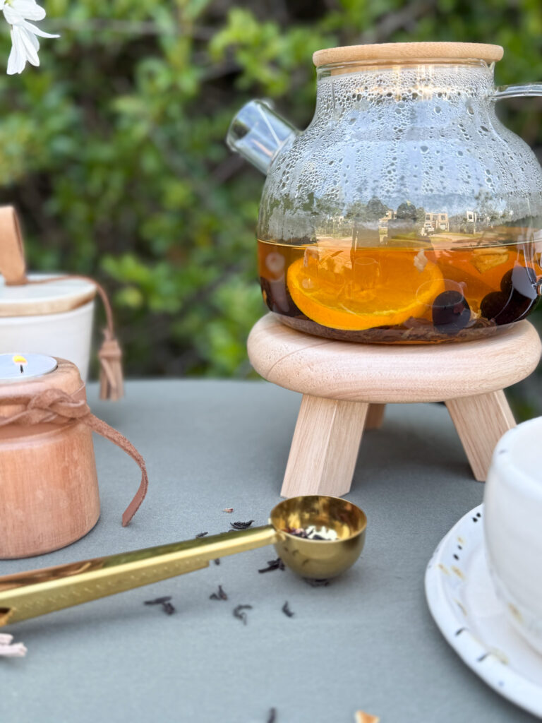 Este florero fusiona la transparencia del vidrio con la calidez del cuero, creando un equilibrio entre lo natural y lo sofisticado.