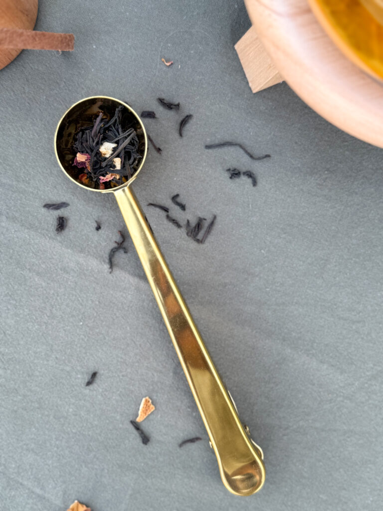 Pinza para cerrar bolsa con cuchara. Fabricado en acero inoxidable con terminación dorada, resiste el uso cotidiano sin perder su elegancia. Perfecto para quienes aman sumar pequeñas piezas con personalidad a su mesa o cocina.