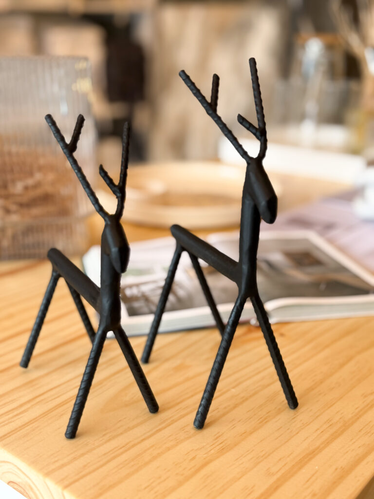 Dos figuras que equilibran diseño escultural y calidez: este set de renos en hierro se vuelve protagonista en cualquier espacio. Su silueta minimalista, geométrica y alargada aporta carácter sin necesidad de estacionalidad.