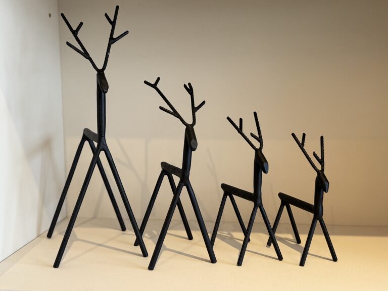 Cada reno está fundido en hierro, con líneas simples que capturan la esencia del diseño escandinavo y una presencia sutil pero contundente.