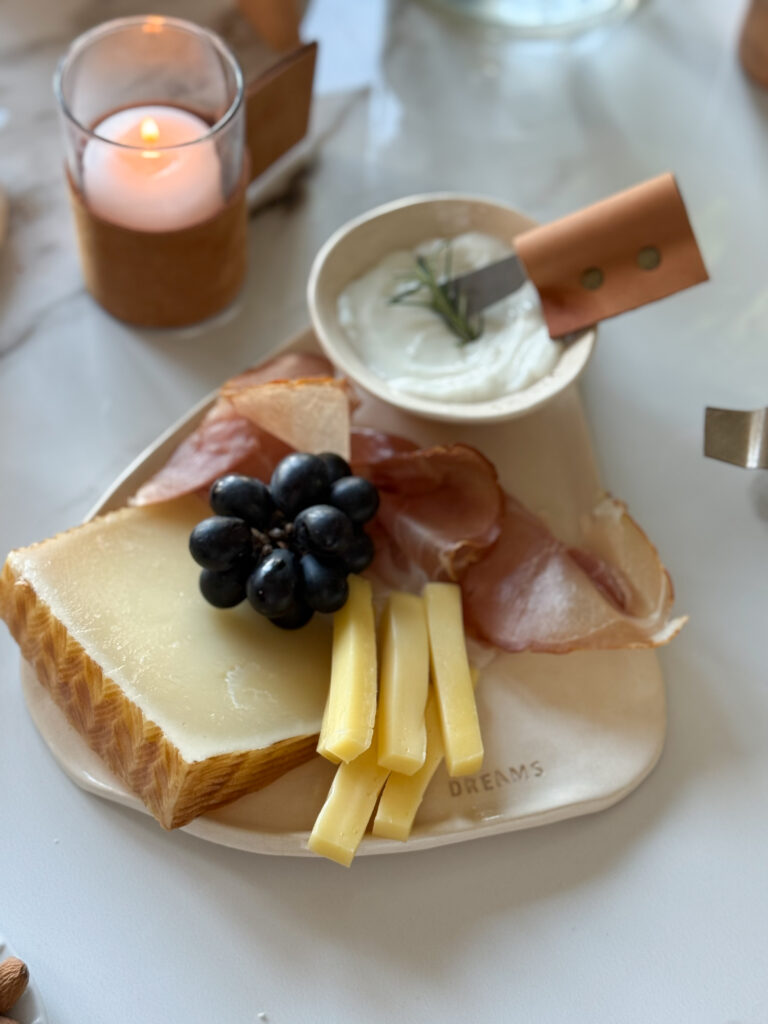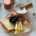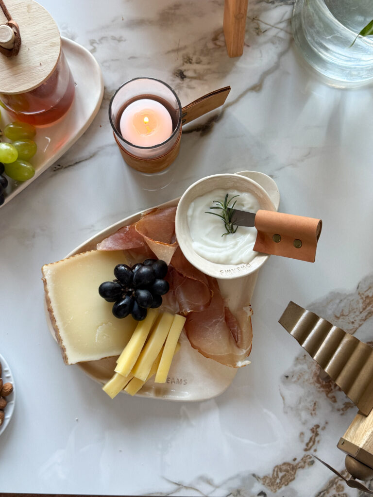 Esta tabla de cerámica artesanal, con forma irregular y terminaciones orgánicas, fue pensada para servir un dip con todo el detalle que merece. El set incluye un bowl pequeño y una espátula de acero con manija de cuero natural, para completar esa escena donde cada elemento suma calidez, textura y estilo.